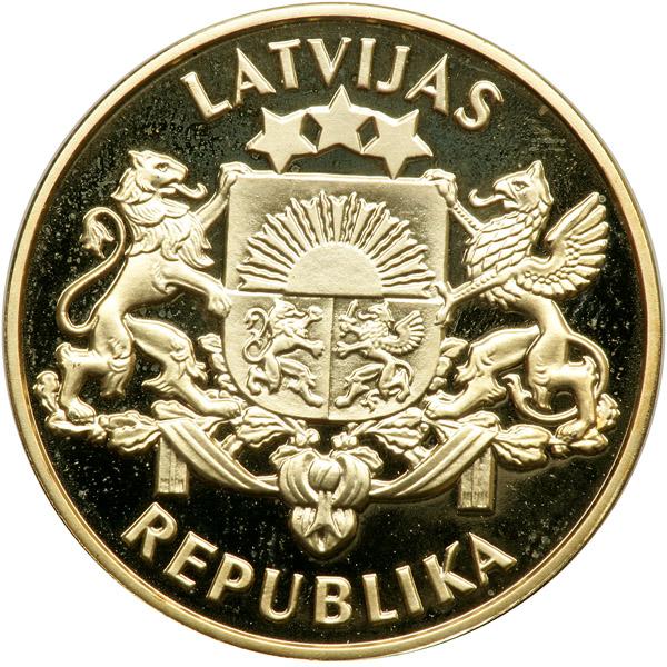 Latvia. 100 Latu, 1993. KM-20. Weight 0.2501 ounce. For the 75th Anniversary of Independence. Choice Brilliant Proof.