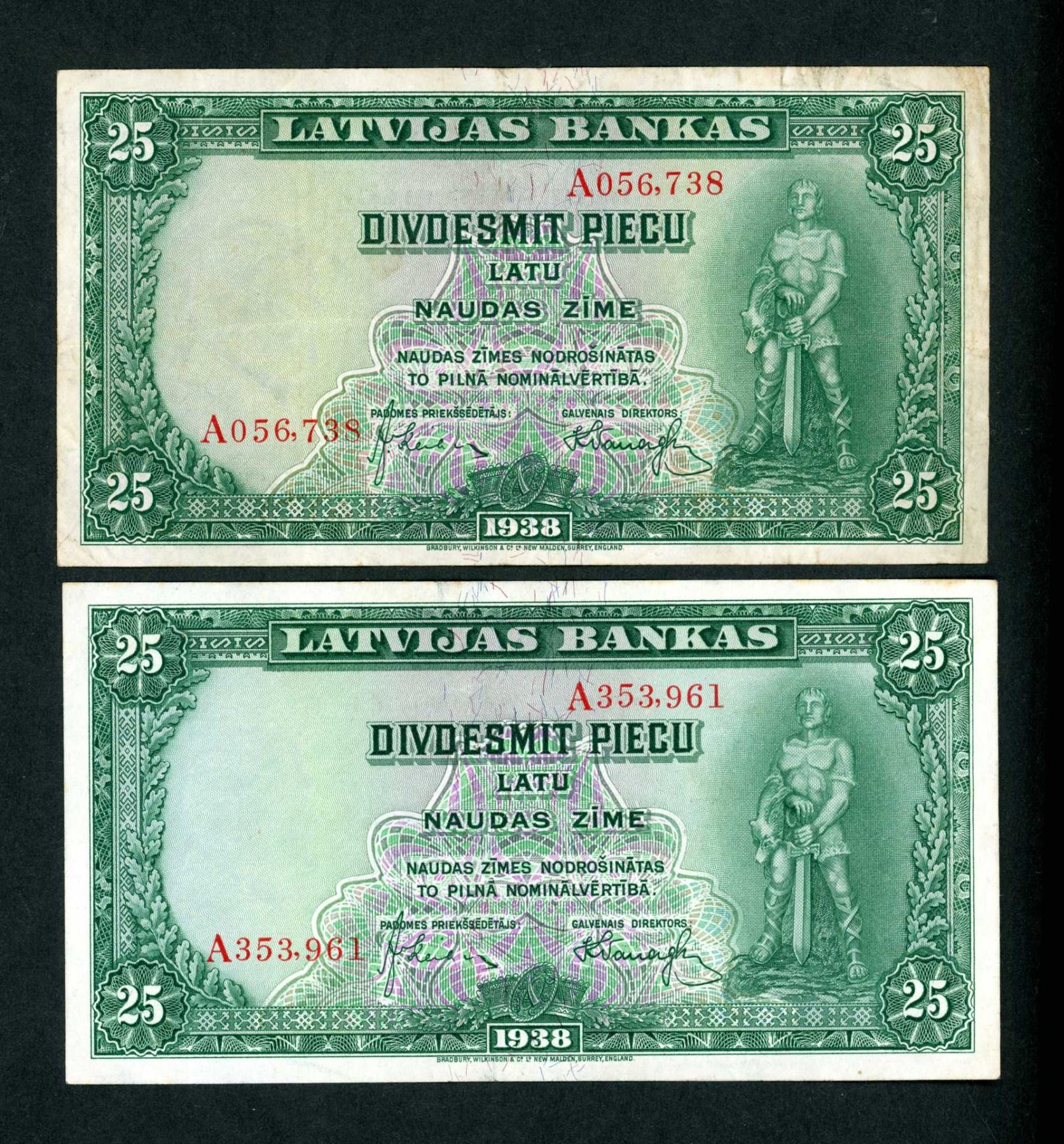 Latvia 1938. A Pair of 25 Latu Banknotes Very Fine-AU