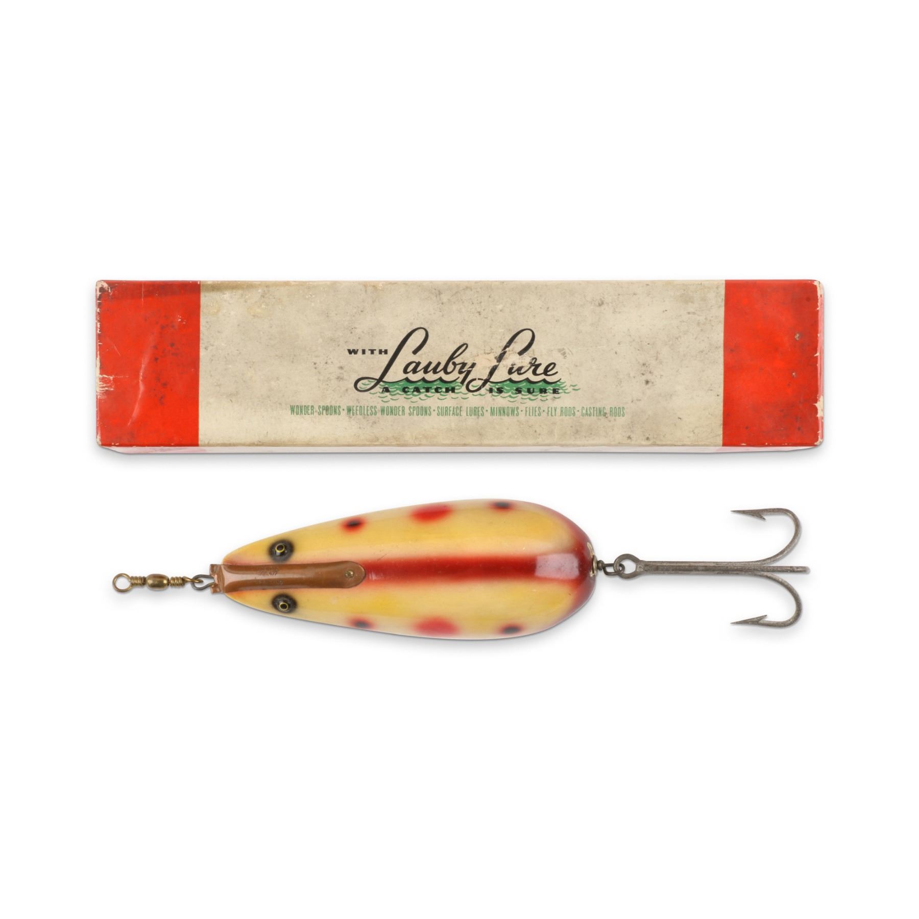 Lauby Lure, United States. 1930s. Boxed. Material: Wood. Quantity: 1. Grade: EX-. Box 11.25" x 2.5" x 2" Est. $150-250.
