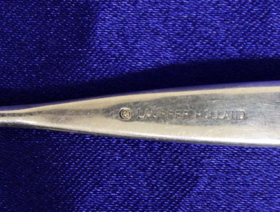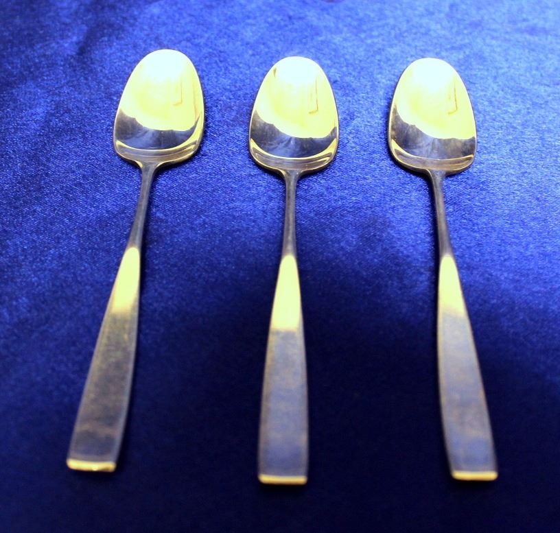 Beautiful Lauffer Holland Stainless Steel Spoons, 3 pieces, measuring 4 1/2" long. Believe them to be "Bedford" pattern. Good condition, not bent.
