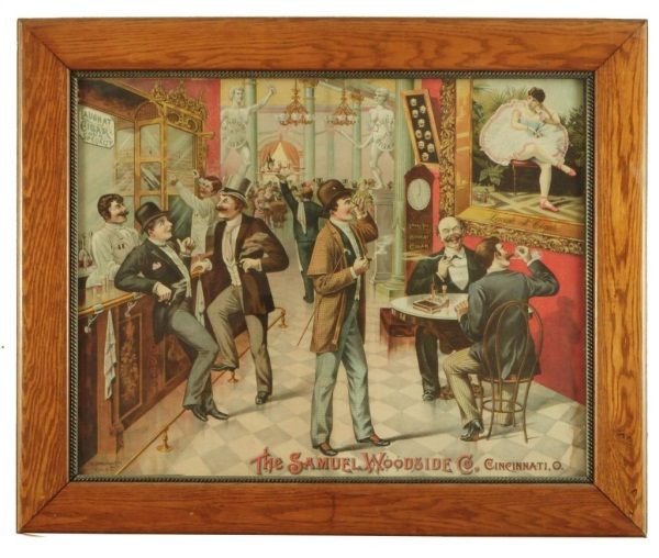 The Samuel Woodside Cigar Co. Cincinnati, O. Excellent Condition (minor stain lower right). Rare. Image 22" x 27 1/2"