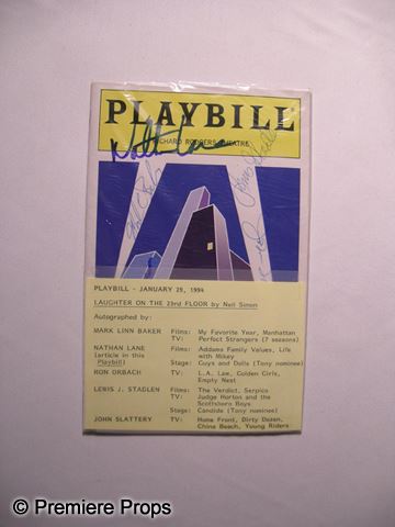 This is an autographed copy of the Playbill for Neil Simon's "Laughter on the 23rd. Floor." Signatures include Nathan Lane, Mark Linn Baker, Ron Orbach, Lewis J. Stadlen and John Slattery.