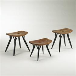 Laukaan Pirkka stools, set of three Asko Finland, 1955 ebonized wood, pine 17.25"w x 11.5"d x 16.5"h Branded marks: [Tapiovaara Designs Made in Finland Laukaan Puu oy].