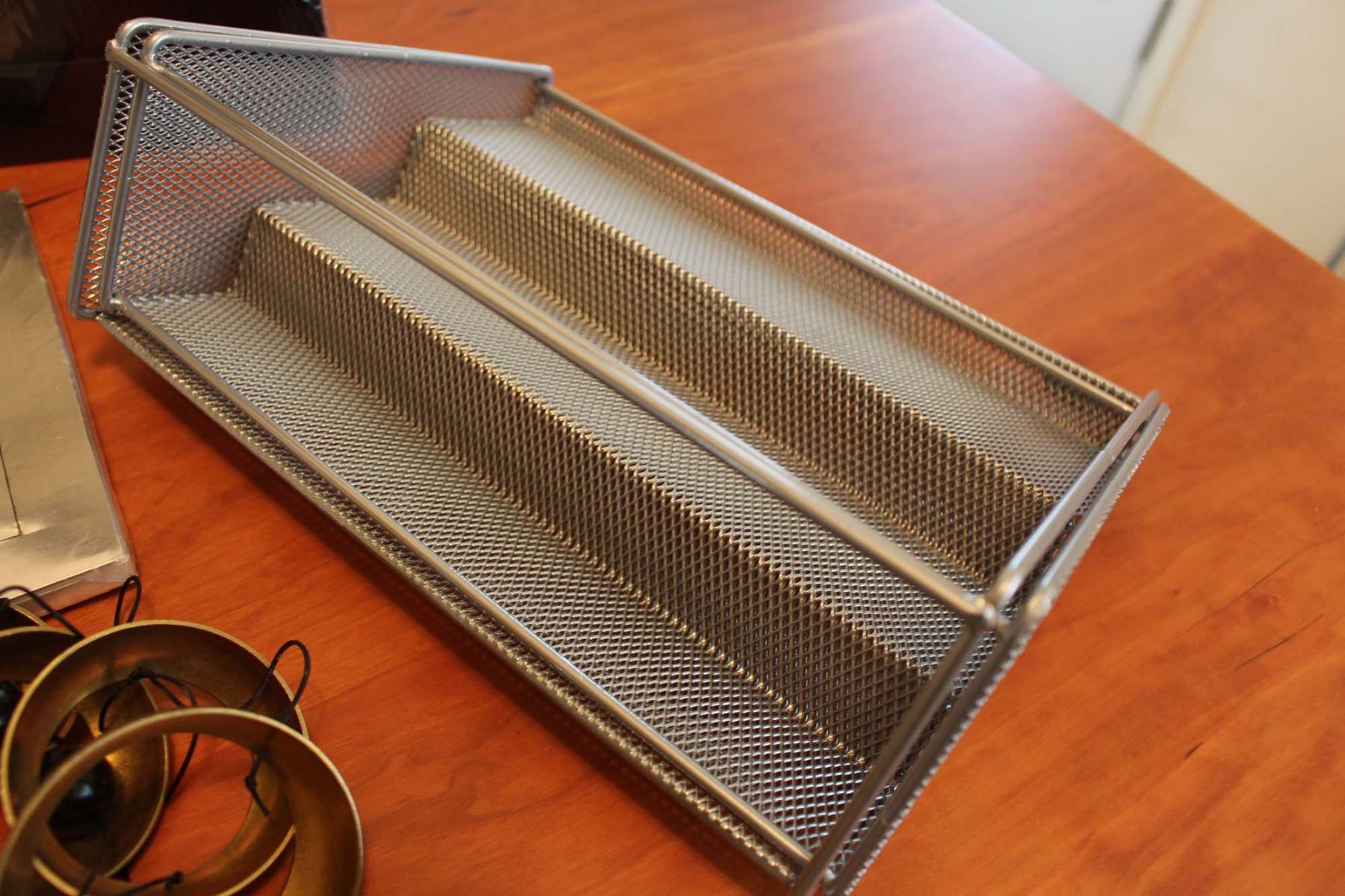 Laundry Basket of Misc Household Items (Clock, ‘24x’35 Mini Blinds, Windchimes, Misc Containers