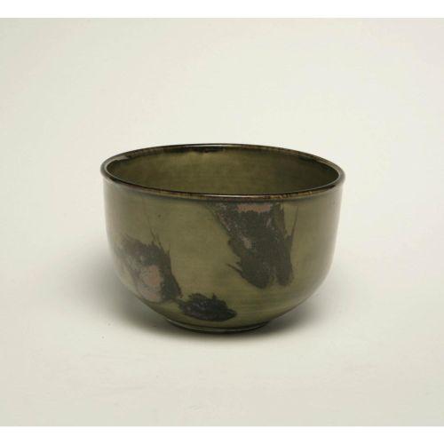 Artist Name: Laura Andreson<BR>Manufacturer: <BR>Description: Monumental porcelain pot in green with oxblood brushstrokes<BR>Circa: 1973<BR>Medium: <BR>Signature: Signed and dated<BR>Measurements: 5.5"h x 8"diameter<BR>Edition: <BR>Notes: <BR>Literature /