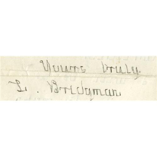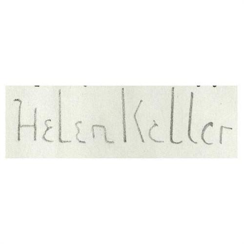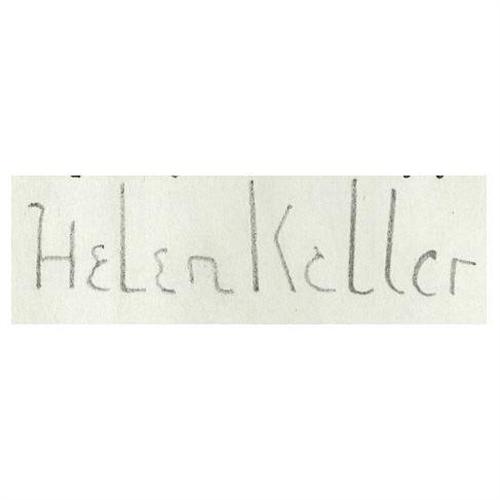 <B> Laura Bridgman Autograph Letter Signed</B></I> <I> "L. Bridgman." </B></I> Three pages, 4" x 6", np, November 27th, 1893. The content is routine, but the true character of the letter is in her keen and skillful handwriting. Bridgman was the first blind, deaf, mute to learn to read and write. Included in this lot are three secretarial versions of Helen Keller's signature. Accompanying these three letters, are several items from her organization: a small card detailing the needs of the blind children in the world, a small pamphlet on Keller's work with the blind in Africa, and a small card with the Braille alphabet on it. <BR> The items in this lot are all in very fine condition on average; usual folds present. From the Henry E. Luhrs Collection. Accompanied by LOA from PSA/DNA.