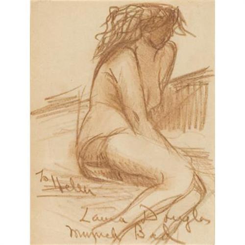 <B>LAURA GLENN DOUGLAS (American, 1896-1996)</B></I><BR><I>Nude at Munich Baths</B></I>, circa 1927<BR>Conte crayon on paper<BR>6 x 4-1/2 inches (15.2 x 11.4 cm)<BR>Signed and inscribed: <I>To Helen/Laura Douglas/Munich Bath</B></I><BR> <BR>PROVENANCE:<BR>Michael Meyer<BR><B>Condition Report:</B> Paper slightly toned, good condition, not examined outside of frame.<BR><BR><b>Shipping:</b> Framed - without Glass, Small (<a target="_blank" href="http://www.heritageauctions.com/common/shipping.php">view shipping information</a>)