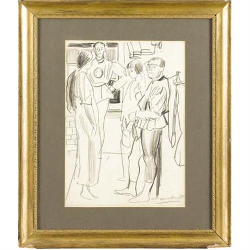 <B>LAURA KNIGHT (British, 1877-1970)</B></I><BR><I>Between Acts: Backstage at the Royal Opera House...</B></I><BR>Graphite on paper<BR>13-1/2 x 9-1/2 inches (34.3 x 24.1 cm)<BR>Signed lower right: <I>Laura Knight</B></I><BR> <BR>PROVENANCE:<BR>The Fine Art Society Ltd., Edinburgh<BR><B>Condition Report:</B> Normal signs of wear as appropriate with age. Matted and framed, not examined out of frame.<BR><BR><b>Shipping:</b> Framed - with Glass, Small (<a target="_blank" href="http://www.heritageauctions.com/common/shipping.php">view shipping information</a>)