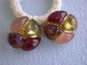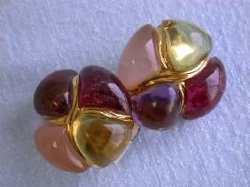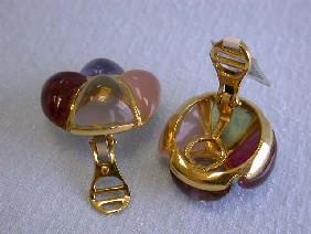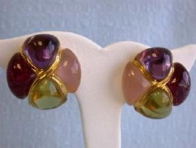 Laura Munder 18k Yellow Gold Earrings with Multi-colored Gemstones - Citrine, Tourmaline, Amethyst, and Rose Quartz and it weighs 41.7 grams