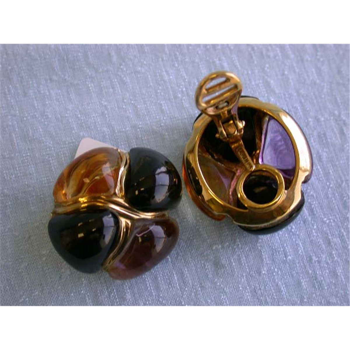 18k Yellow Gold Earrings w/ Multi-colored Gemstones - Yellow Beryl, Black Tourmaline, Amethyst weighs 43.9 grams