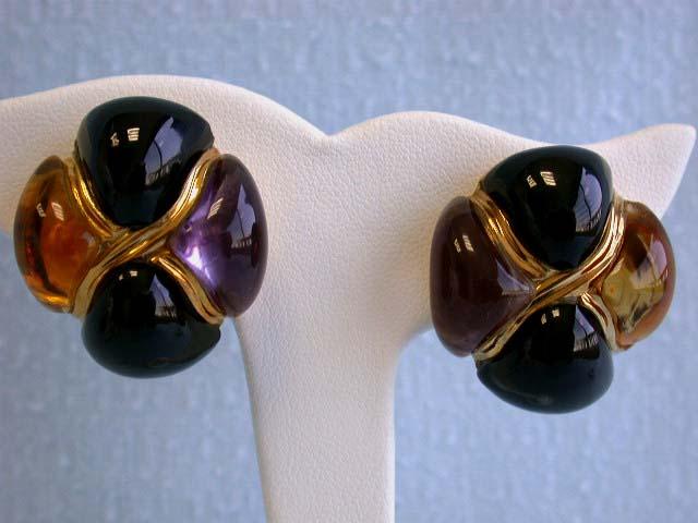 18k Yellow Gold Earrings w/ Multi-colored Gemstones - Yellow Beryl, Black Tourmaline, Amethyst weighs 43.9 grams