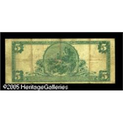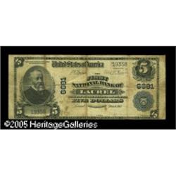 <B>Laurel, MS</B></I> - $5 1902 Plain Back Fr. 598 <B>The First NB</B></I> Ch. # 6681<BR>This <B>Fine</B></I> note was likely carried as a keepsake for some period, as the folds are a bit on the heavy side and there are wallet transfer indications. Our Cincinnati auction in September of 2002 saw an EF-AU in this denomination from here sell for #1,265.00. This more experienced example should reach... Lot:16906