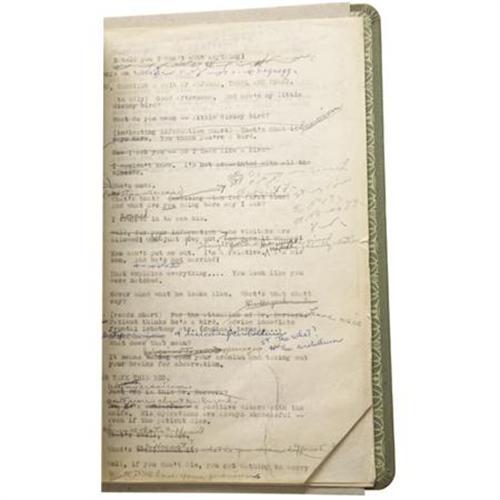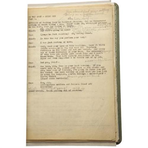 <B>Oliver Hardy Draft Scripts.</B></I> A blueprint of the comic genius of Laurel and Hardy -- in their own handwriting! This lot offers Stan Laurel's personal and heavily annotated scripts for stage skits performed (of course) with Oliver Hardy -- <I>A Spot of Trouble,</B></I> <I>On the Spot</B></I> (a revision of the previous title) and <I>Birds of a Feather.</B></I> Laurel and Hardy performed these skits in personal appearance tours, to enormous audience response. Stan Laurel wrote the skits, and refers to Hardy's character in many of the pages as "Babe," which, of course, was Oliver's nickname. There are sixty pages, and the extensive annotation shows how meticulously the team fine-tuned their comedy material. Some of the notations appear in shorthand; these were most likely written by Lucille Hardy (Oliver's wife). We believe none of the handwriting belongs to Hardy.The scripts are enclosed in a 9" x 11.5" binder with "Babe Hardy" printed by hand on the cover, and this was his traveling script copy as the team played these skits internationally. A wonderful Laurel and Hardy artifact, in Very Good condition.<BR><BR><b>Shipping:</b> Books & Catalogs (<a target="_blank" href="http://www.heritageauctions.com/common/shipping.php">view shipping information</a>)