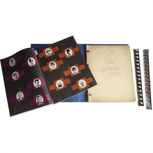 <B>Laurel and Hardy Working Script for "A Chump at Oxford," Plus Stan and Ollie Cigar Bands and Two Strips of 35 mm Film.</B></I> The original 59-page shooting script, dated May 22, 1939, for <I>A Chump at Oxford</B></I> (1940), which featured Stan's tour de force dual performance as Stan and the insufferable Lord Paddington. The lot also features ten pages of peel-off Laurel & Hardy cigar bands, showing Stan and Ollie in different hats and poses, as well as two strips of 35 mm - 15 frames on one strip, 16 on the other - showing the team in action. Wonderful material on the legendary comic duo.<BR><BR><b>Shipping:</b> Books & Catalogs (<a target="_blank" href="http://www.heritageauctions.com/common/shipping.php">view shipping information</a>)