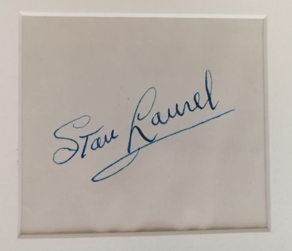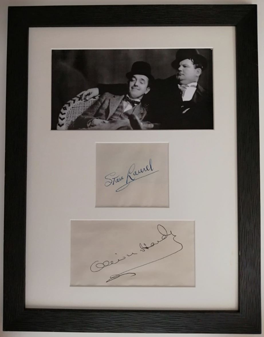 Autographs of Oilver Hardy and Stan Laurel, mounted and framed. Supplied with coa.