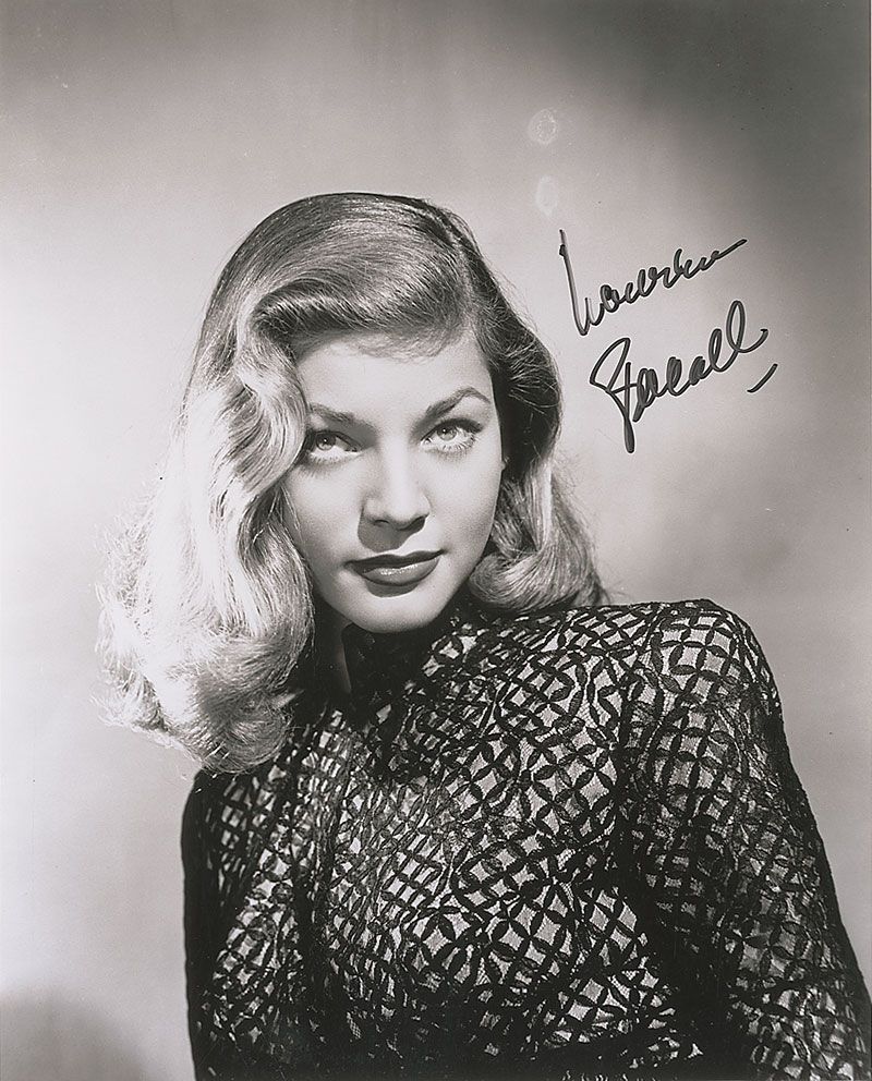 Glossy 8 x 10 photo of Bacall early in her career, signed in black felt tip. In very fine condition.