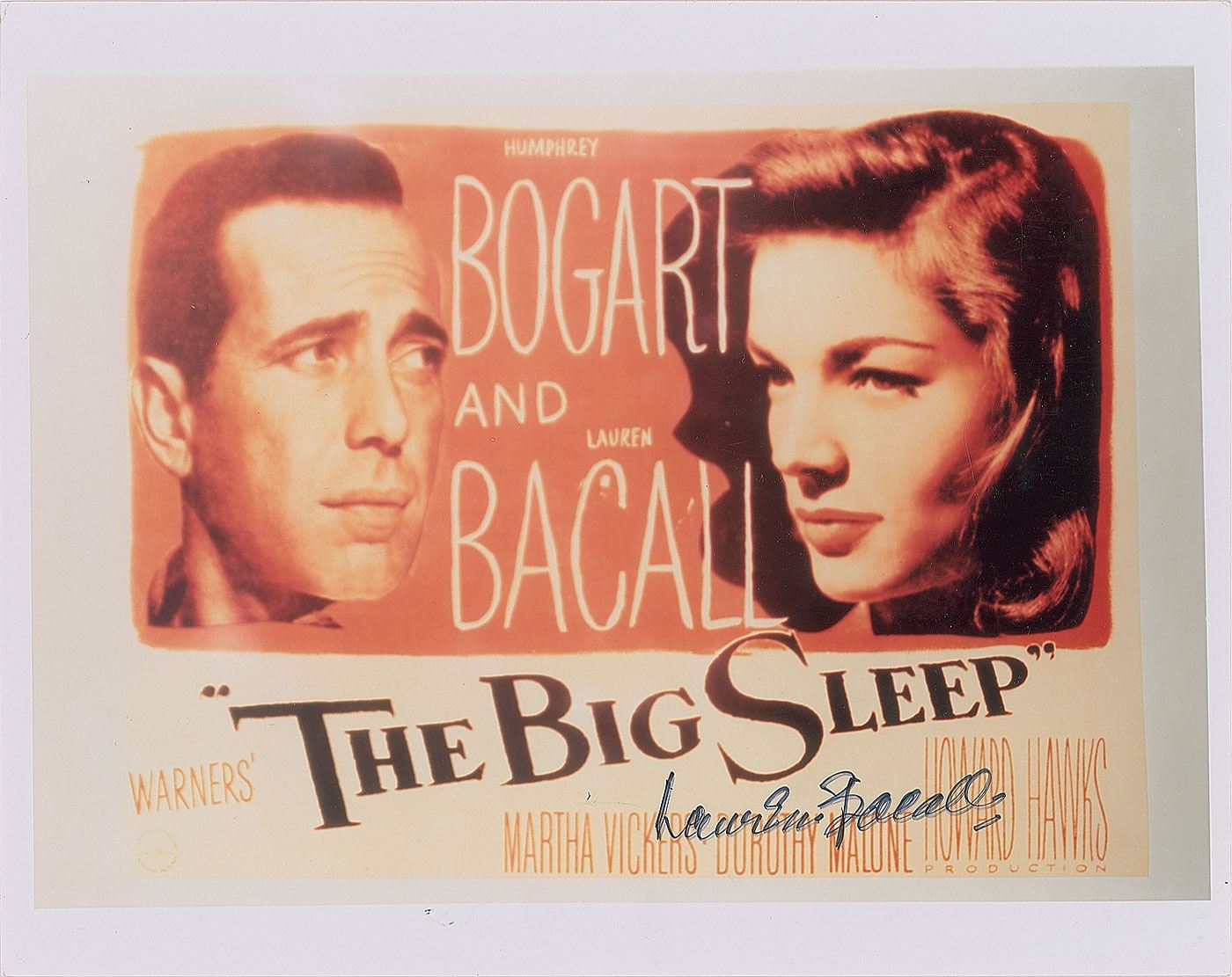 Color glossy 10 x 8 photo of a poster for the classic film The Big Sleep, signed in black felt tip by Bacall. In fine condition.