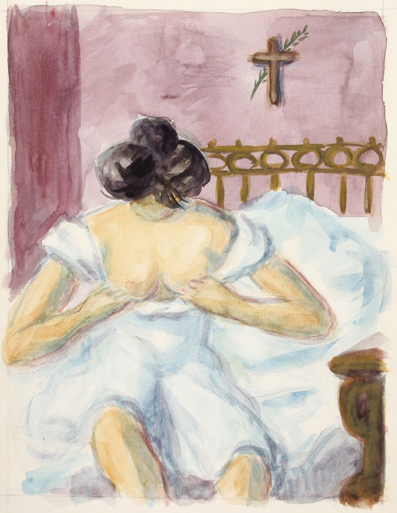 Laurent Marcel Salinas, Dressing in Bedroom with Cross 127, Watercolor Painting
