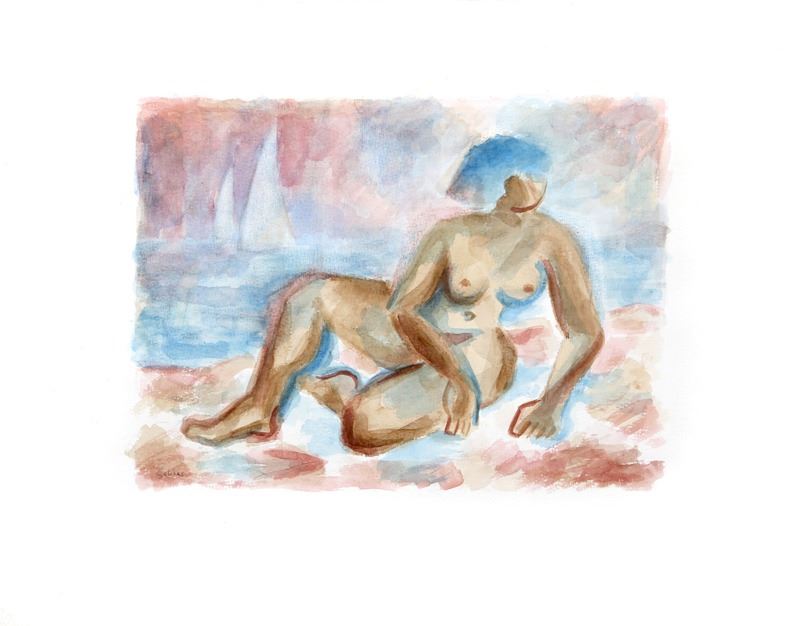 Laurent Marcel Salinas, Reclining Nude, Gouache Painting