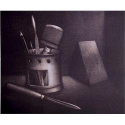 ETCHER'S TOOLS, mezzotint etching, signed in pencil, numbered edition of 55, image 9 3/4 x 11 1/2", full margins. $300/500