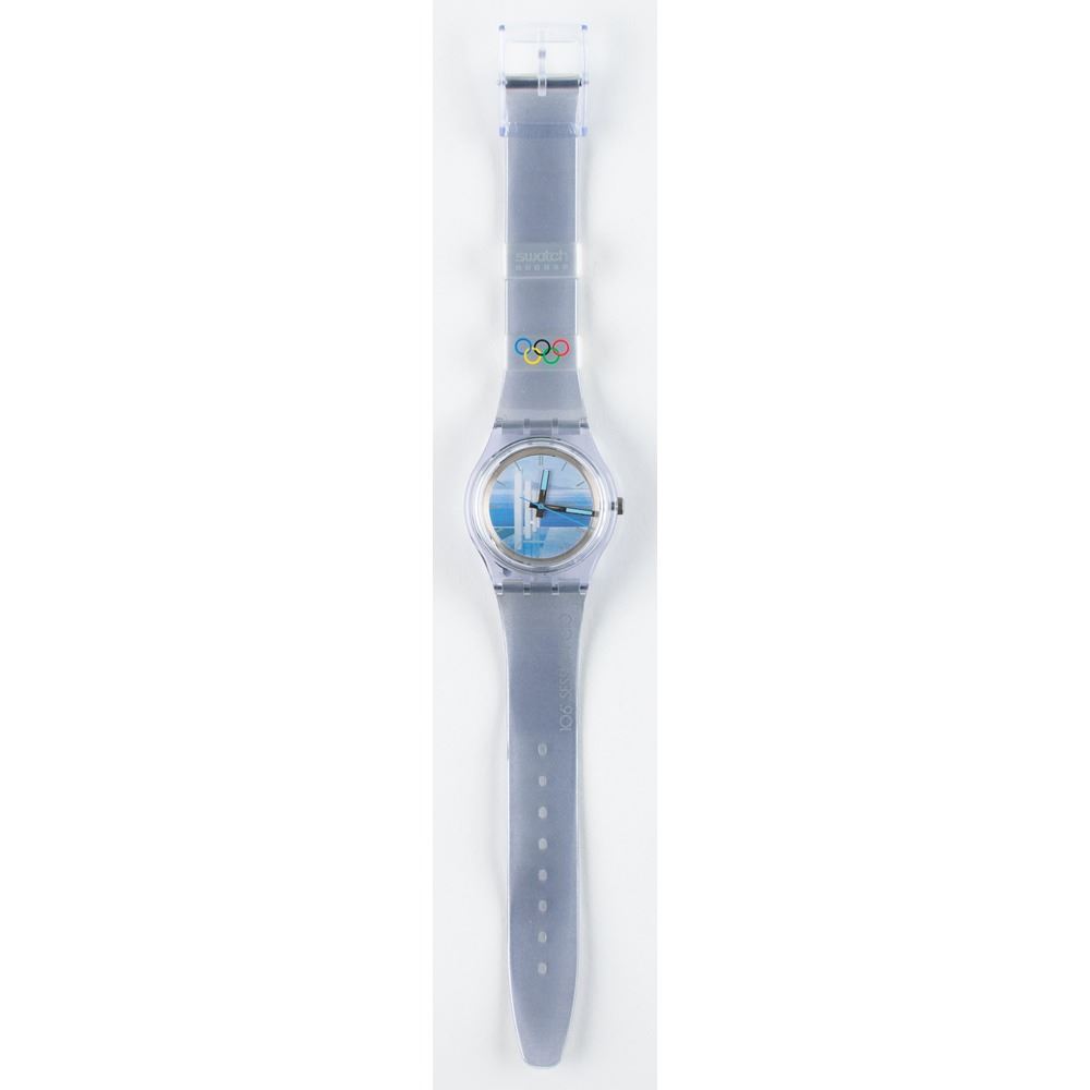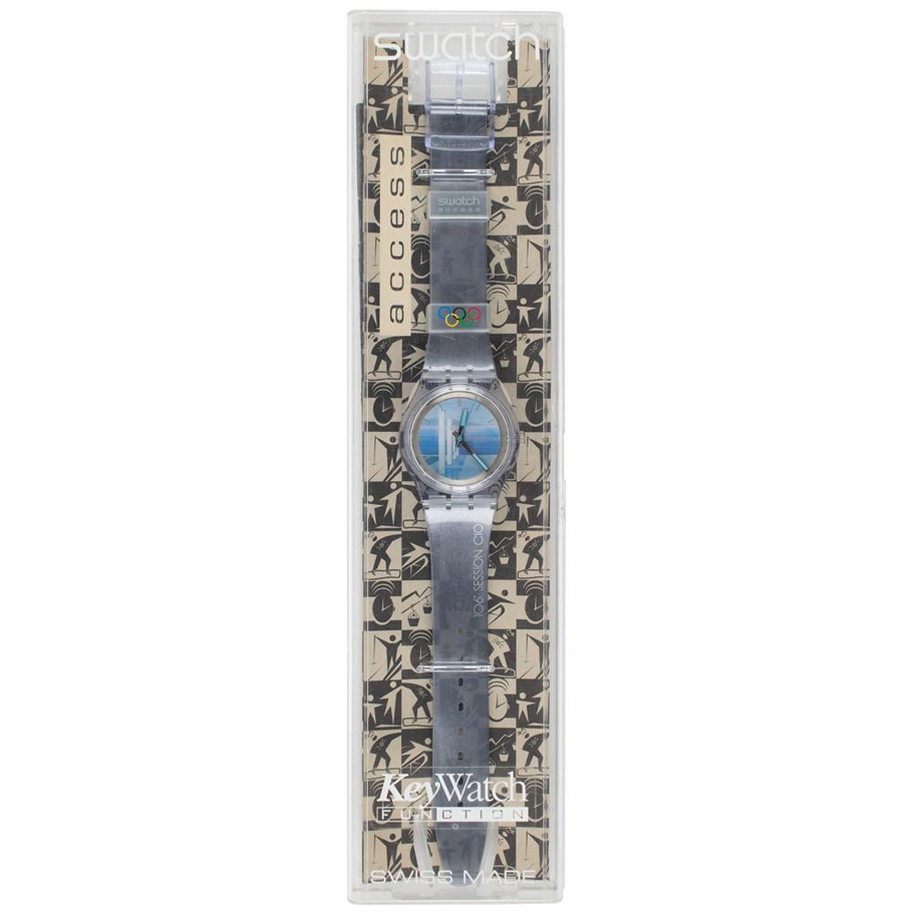 Swatch Access watch presented to members of the International Olympic Committee (IOC) at the 106th IOC meeting held in Lausanne, Switzerland in 1997, limited edition of 200 issued. The watch measures 9Ë in length, with the rubber strap marked “106 Session CIO,†and the strap holder featuring the Olympic rings. Includes the original case and instruction manuals. In fine condition. These watches were given specially to IOC members and were never made available to the public.