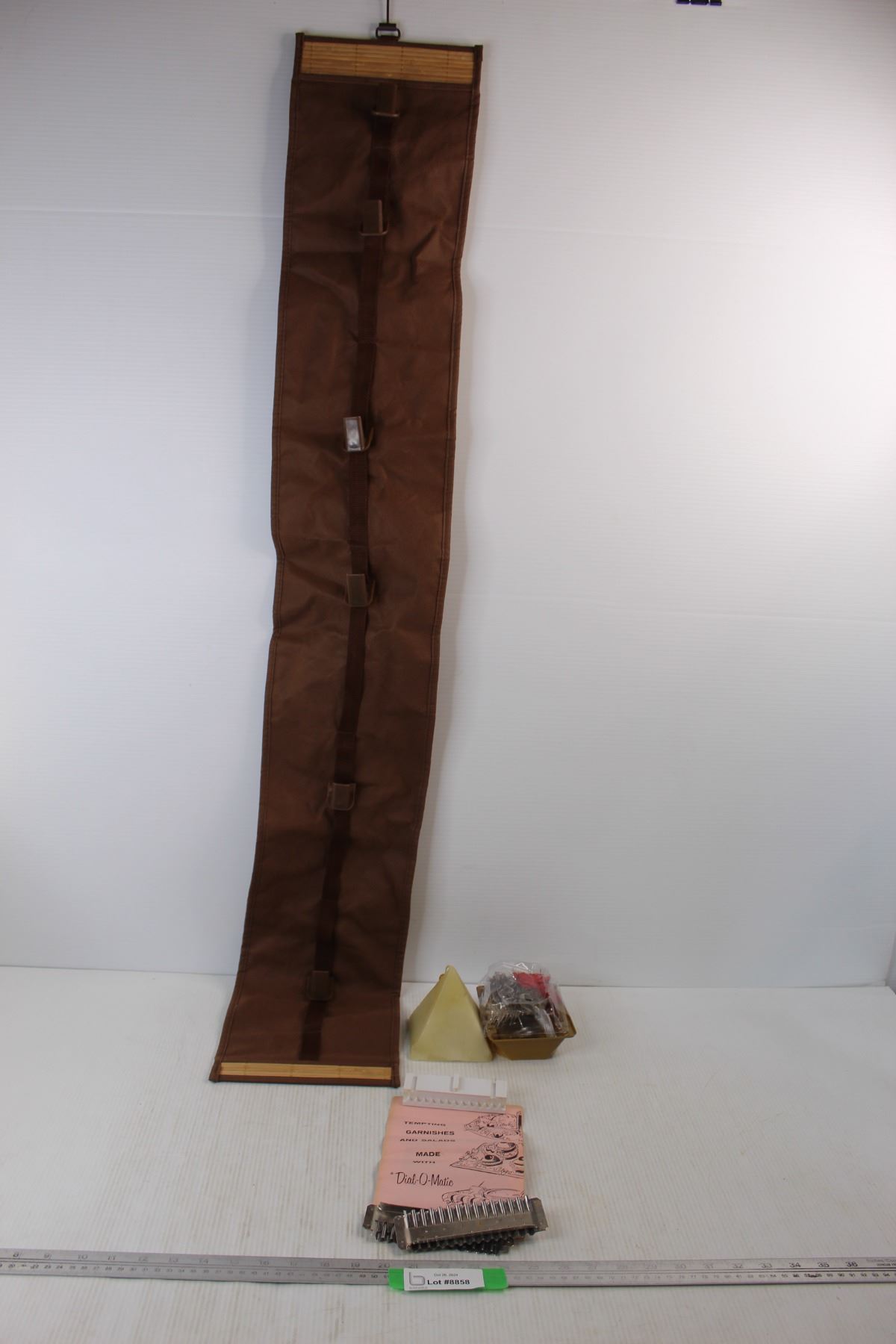 Lava Enterprises Pyramid Shaped Candle, Closet Hanger w/ Clips , Dial O Matic Food Cutter- Missing pieces , Misc.