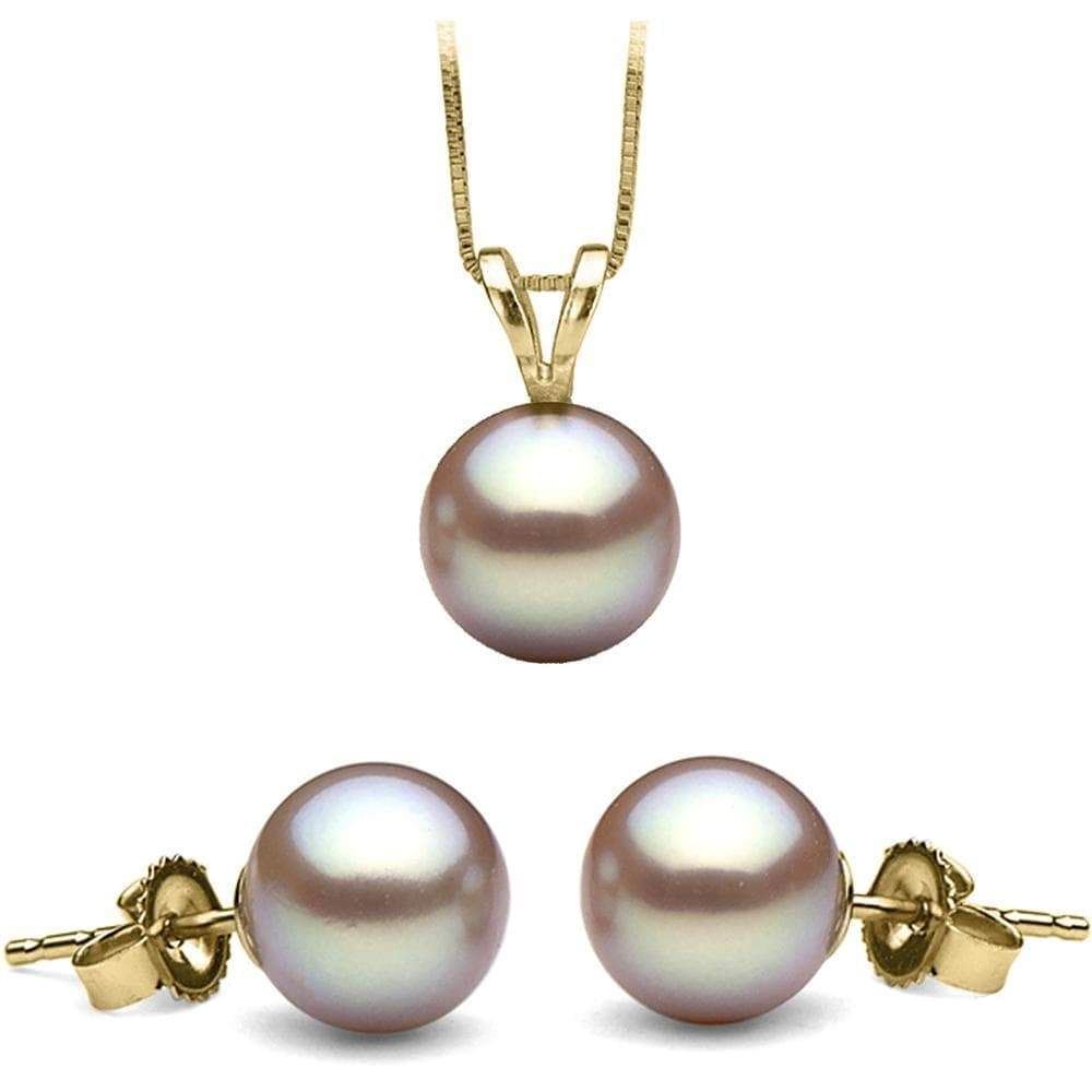 Lavender Freshwater Classic Pendant and Stud Earring Set