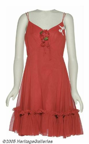 <B>"Laverne & Shirley" Matching Dresses.</B></I> Here is a pair of matching red crepe dresses worn by actresses Shirley Williams and Penny Marshall on the popular sitcom "Laverne & Shirley." You can tell which one was Laverne's -- it has the letter "L" embroidered on it, of course.