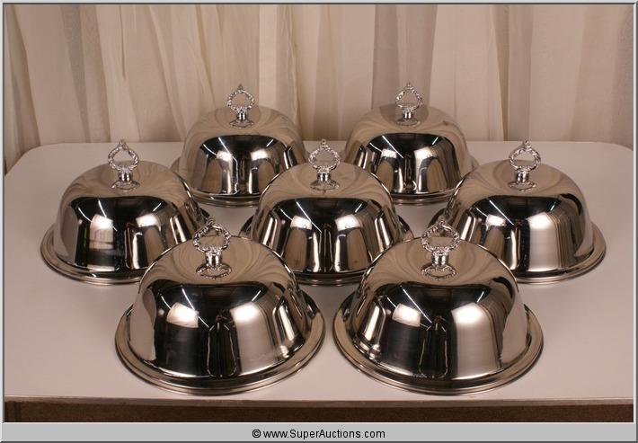 Screen Used Set of 7 Chrome Serving Trays with Covers (12 Pieces Total) from 2009 "Law Abiding Citizen" {18" Diameter}