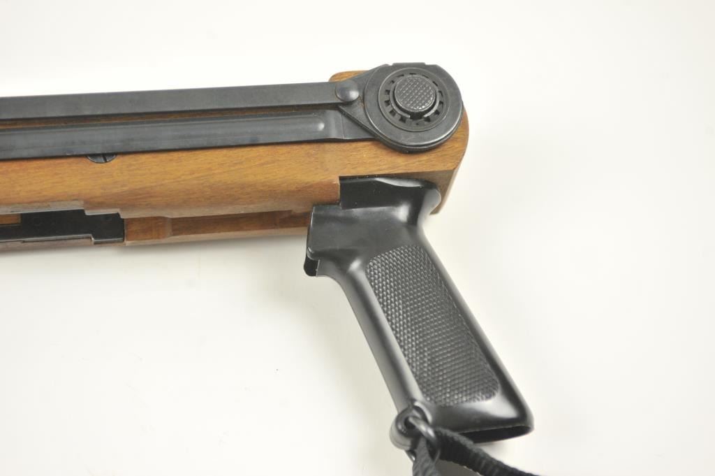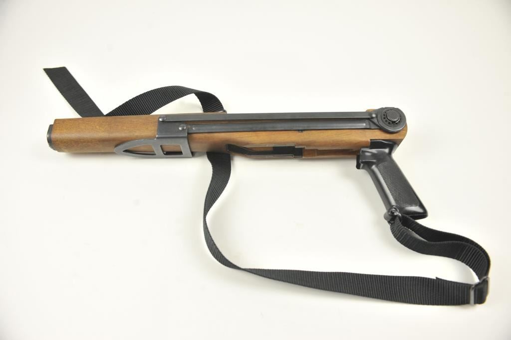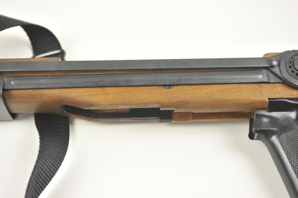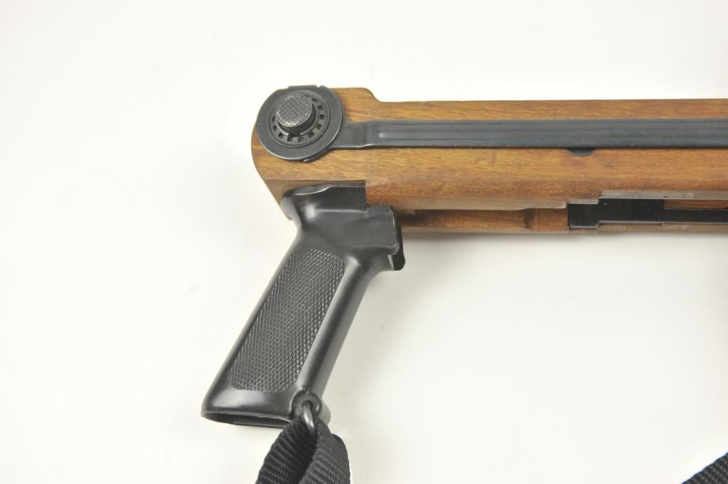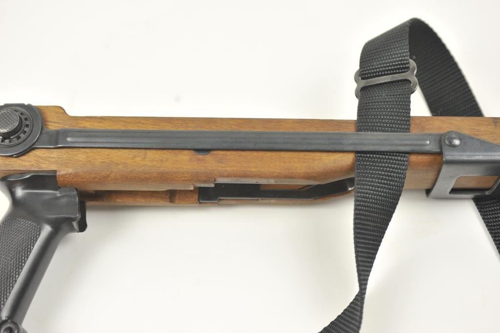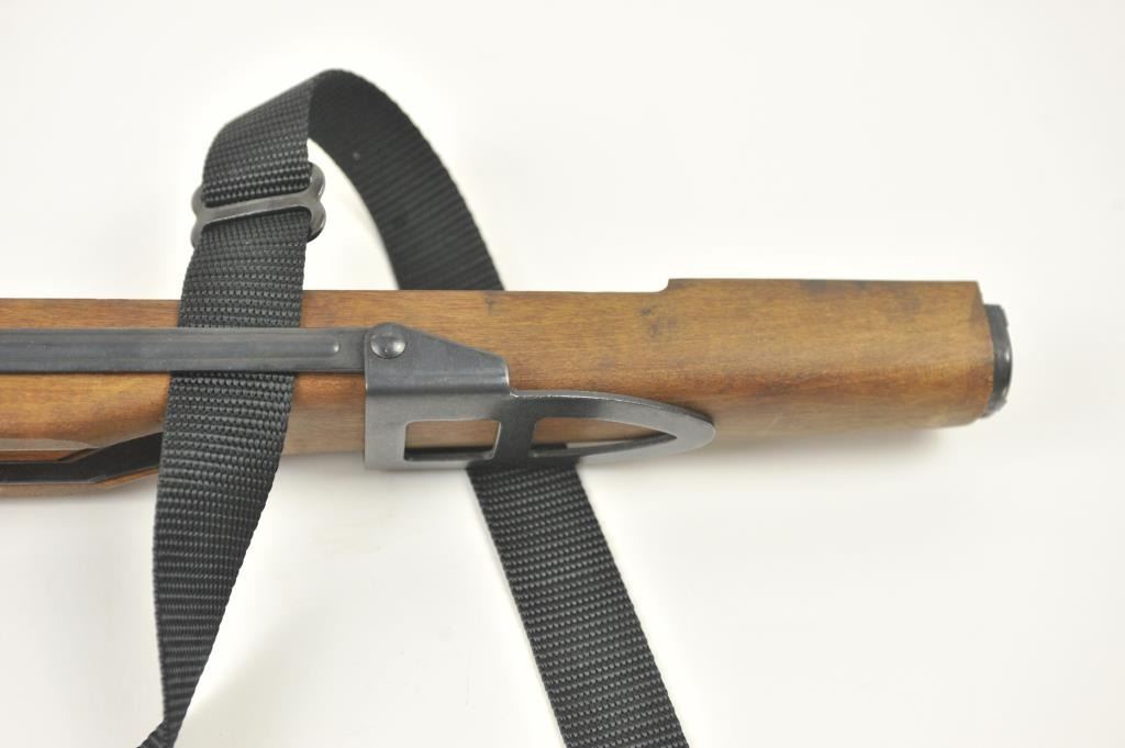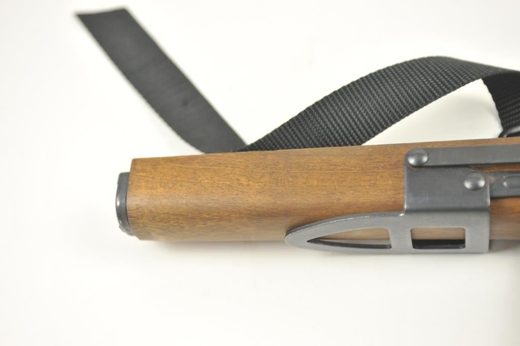 Law Enforcement folding stock for a Ruger Mini-14. The smooth wood stock has a folding steel butt with checkered plastic pistol grip and nylon strap. The stock is in very good overall condition. Note-By assembling a firearm using this stock, the gun will, by California law, be an “Assault” rifle and subject to all laws regarding such firearms. Est.: $300-$600.