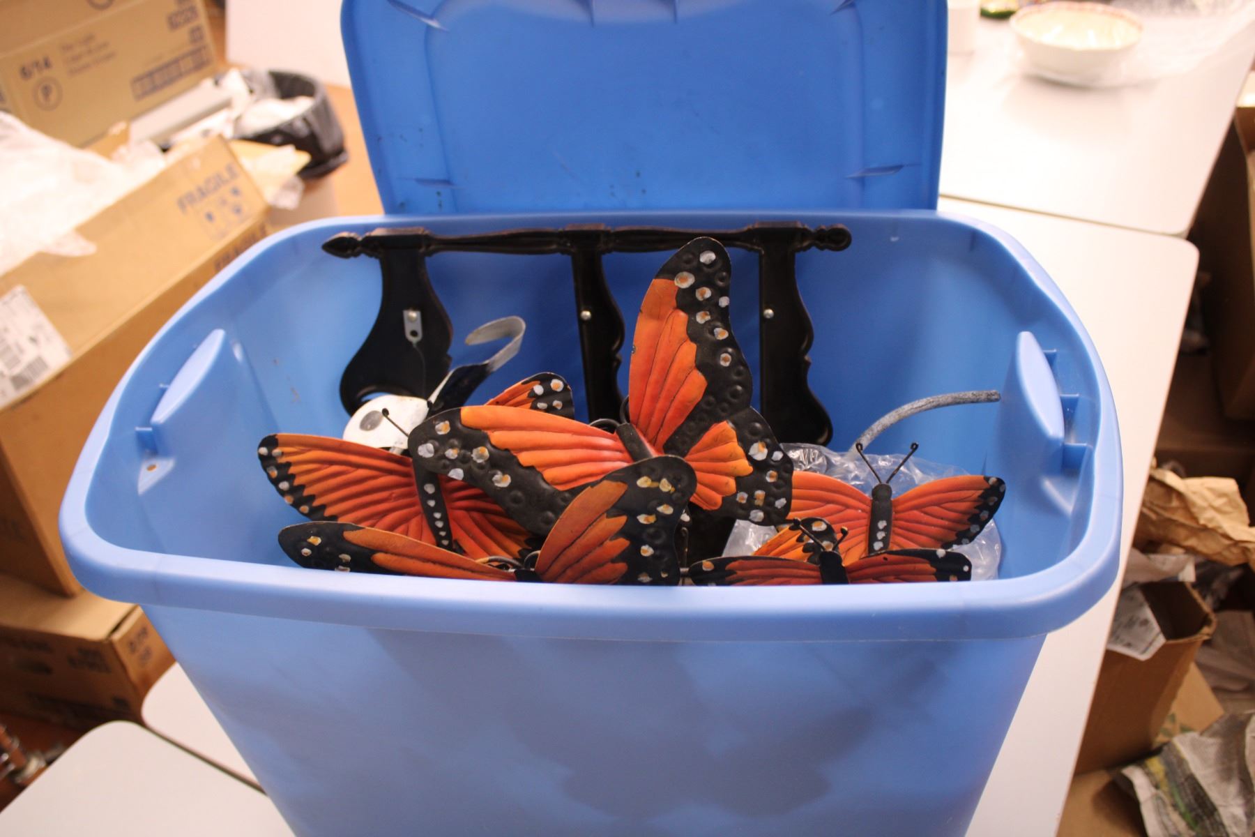 *Lawn ornaments, Bird House with Plastic bin