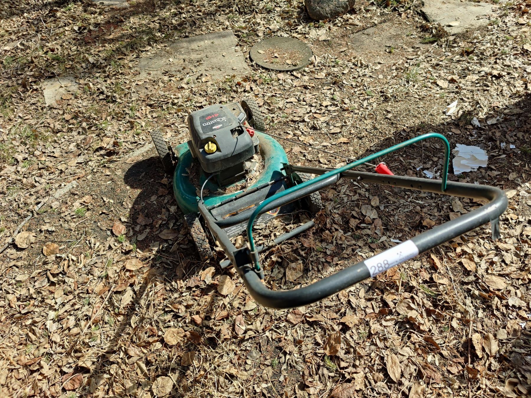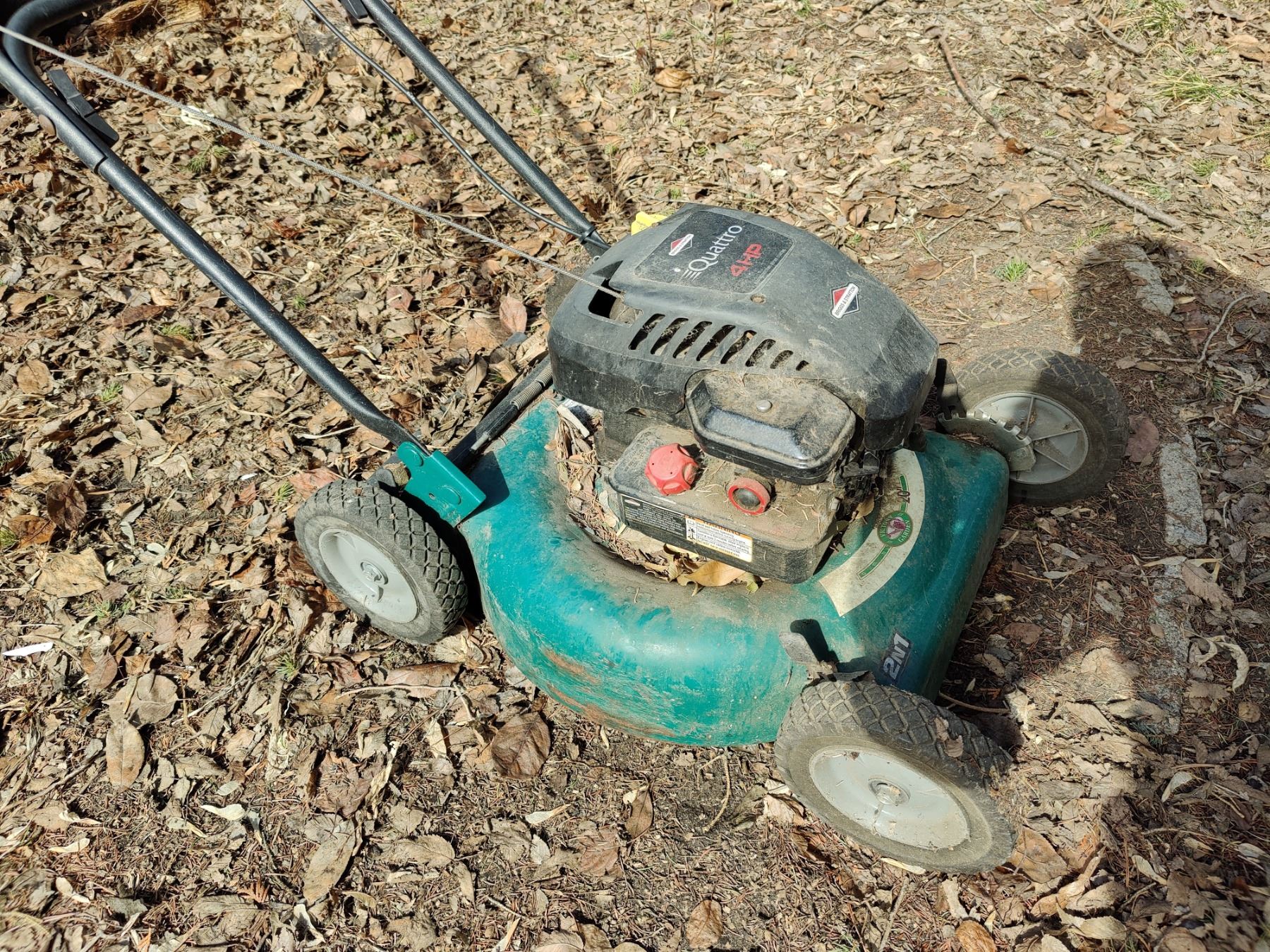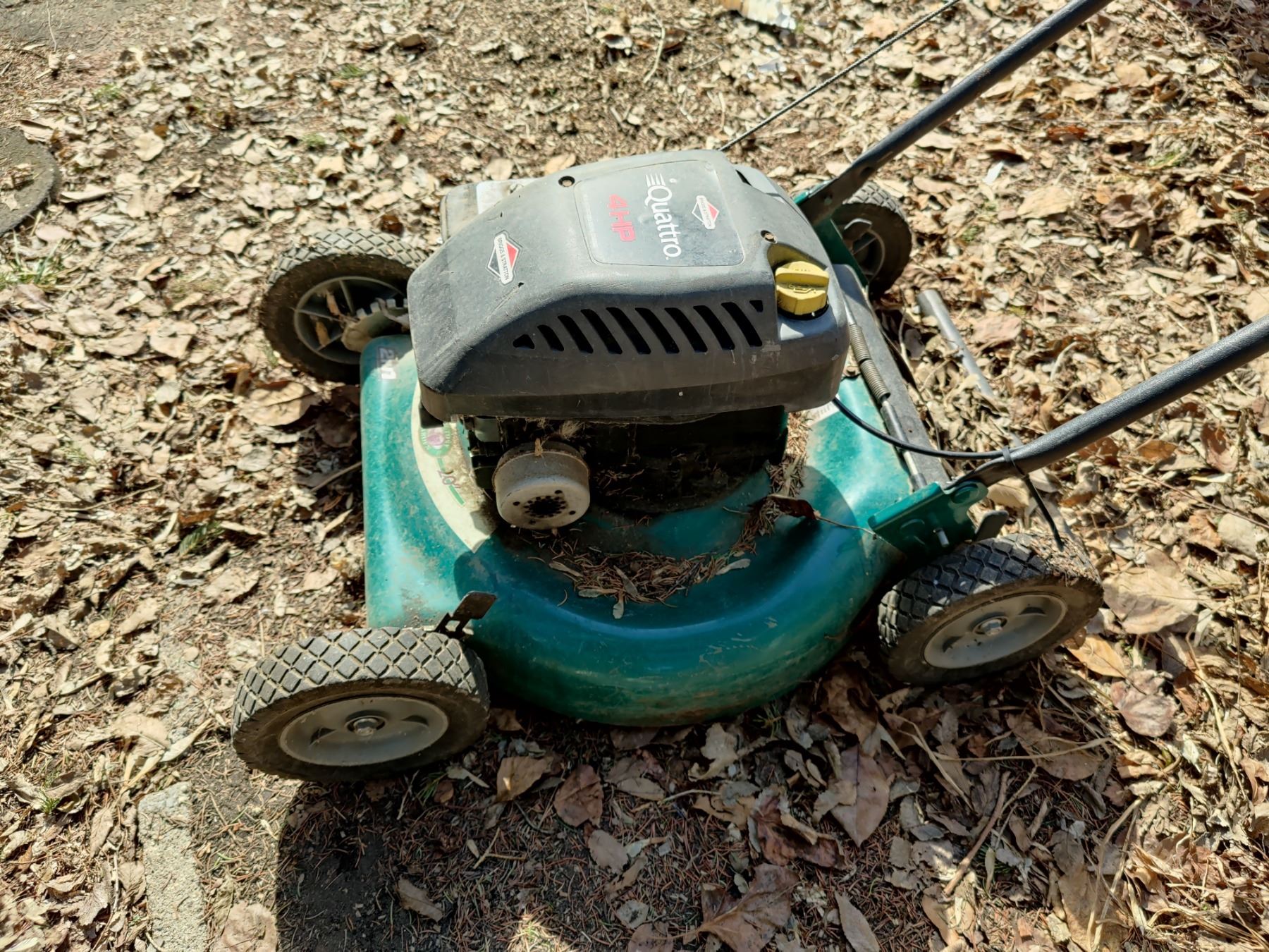 "Briggs and Stratton Quatro" brand 4 horsepower lawnmower. Mo.#20405X32A. Untested