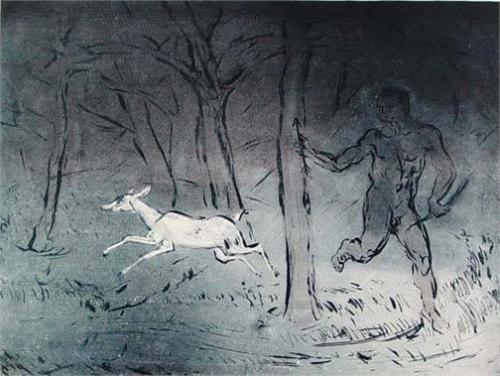 Lawrence Barrett (1897-1973) (Colorado) Member of the Broadmoor Art Academy, Lithograph, "The Milk White Doe," sight size 13.5" x 17.25", pencil signed lower right, Est $250 - $350