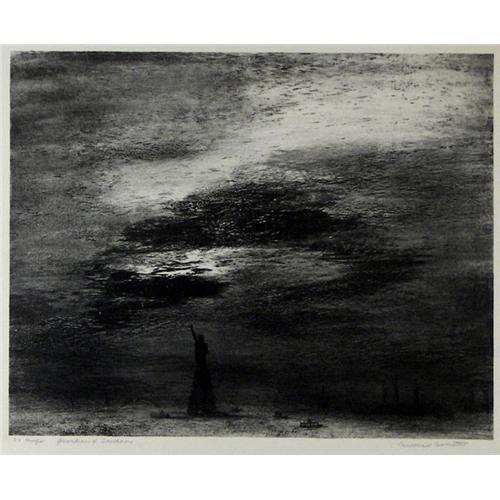 Lawrence Barrett (1897-1973) Broadmoor Art Academy, Lithograph, "Guardian of Freedom", 29 proofs, image size 11 1/8" x 13 7/8", pencil signed