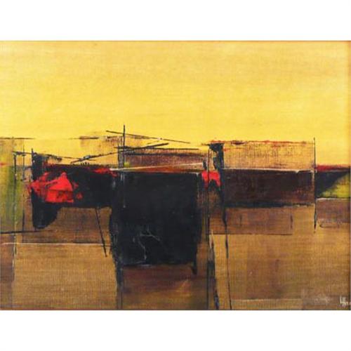 Lawrence Harris (b. 1937) Abstract Oil on Board Signed lower right '63 11" x 15"