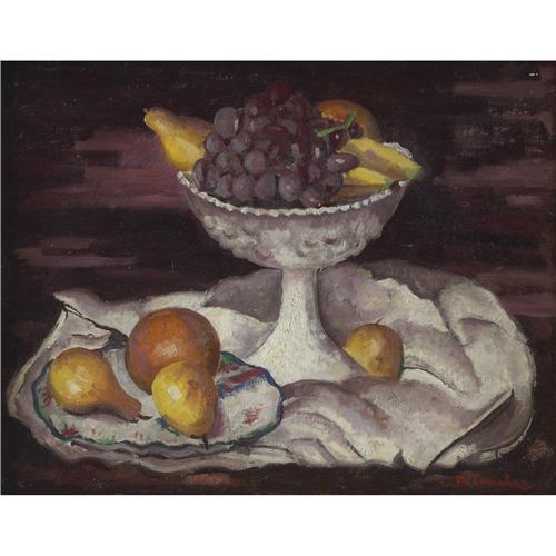 Lawrence McConaha (American, b.1894), Still Life with Fruit and Compote, c.1930;oil/board,16in. x 20in., signed.McConaha was part of a group of artists working in Richmond, indiana in the first part of the 20th century.He studied with Guy Wiggins and Geor