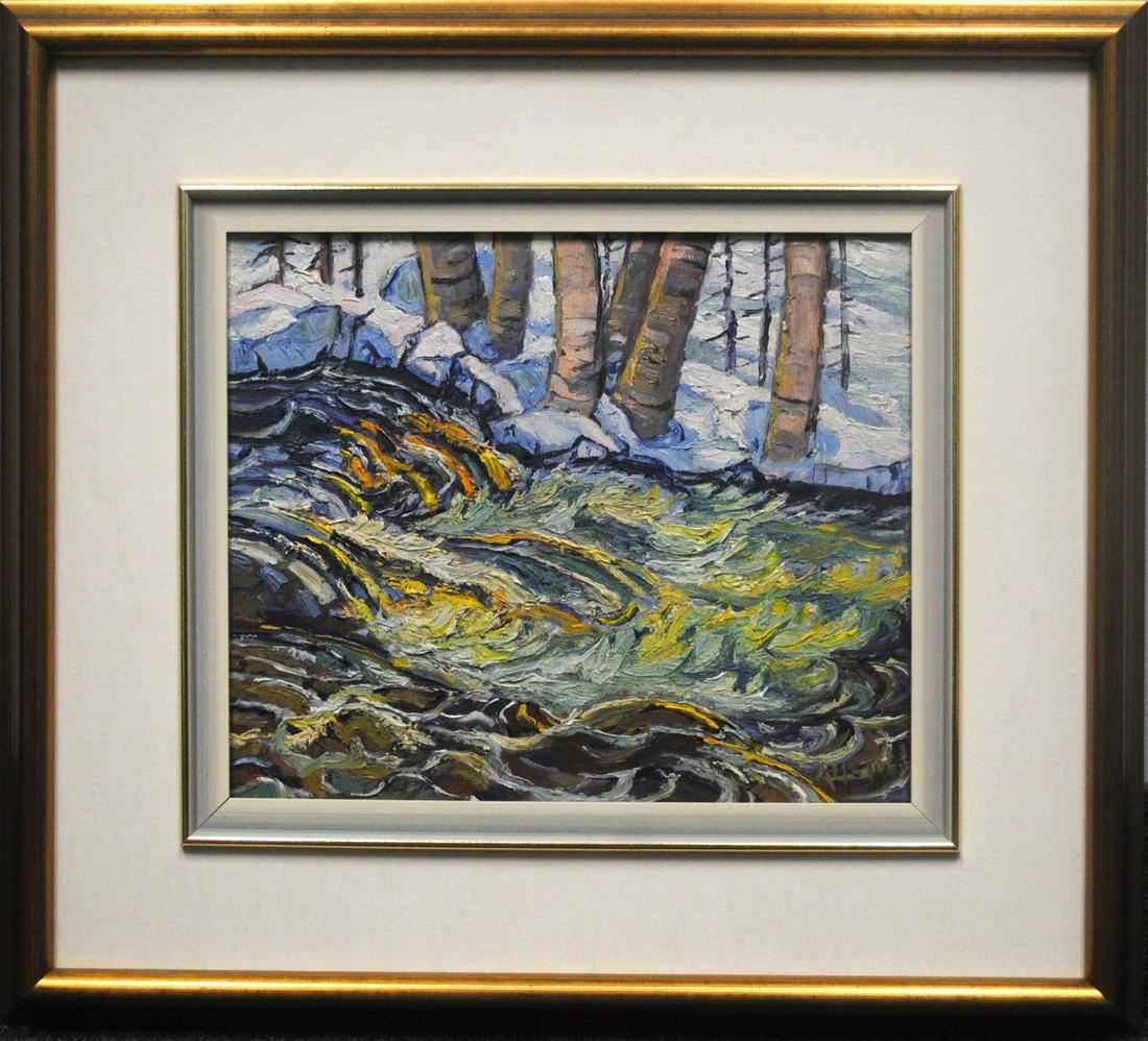Lawrence Nickle's "Chutes, South Branch Magnetawan River" original oil on panel. Image- 10" x 12". Frame- 18" x 19 3/4"