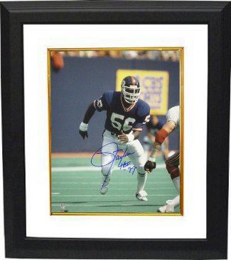 Lawrence Taylor played his entire professional career as a linebacker for the New York Giants. He is considered to be one of the greatest players in the history of football, and has been called the greatest defensive player of all time by members of the media, former players, and coaches. He won a record three Defensive Player of the Year awards and was named the league's Most Valuable Player (MVP) for his performance during the 1986 season. He was named First-team All-Pro in each of his first nine seasons and was a key member of the Giants' defense, nicknamed "The Big Blue Wrecking Crew", that led New York to victories in Super Bowl XXI and XXV. Lawrence Taylor has hand autographed this New York Giants 16X20 Photo w/ HOF 99 inscription. Certificate of Authenticity from Athlon Sports. Custom White Mat and Black Color Framed