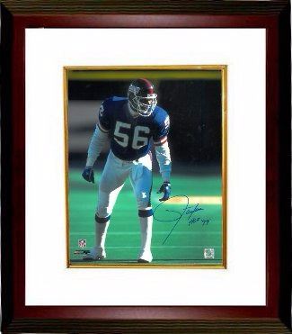 Lawrence Taylor played his entire professional career as a linebacker for the New York Giants. He is considered to be one of the greatest players in the history of football, and has been called the greatest defensive player of all time by members of the media, former players, and coaches. He won a record three Defensive Player of the Year awards and was named the league's Most Valuable Player (MVP) for his performance during the 1986 season. He was named First-team All-Pro in each of his first nine seasons and was a key member of the Giants' defense, nicknamed "The Big Blue Wrecking Crew", that led New York to victories in Super Bowl XXI and XXV. Lawrence Taylor has hand autographed this New York Giants 16X20 Photo w/ HOF 99 inscription. Certificate of Authenticity from Athlon Sports. Custom White Mat and Mahogany Color Framed