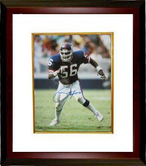Lawrence Taylor played his entire professional career as a linebacker for the New York Giants. He is considered to be one of the greatest players in the history of football, and has been called the greatest defensive player of all time by members of the media, former players, and coaches. He won a record three Defensive Player of the Year awards and was named the league's Most Valuable Player (MVP) for his performance during the 1986 season. He was named First-team All-Pro in each of his first nine seasons and was a key member of the Giants' defense, nicknamed "The Big Blue Wrecking Crew", that led New York to victories in Super Bowl XXI and XXV. Lawrence Taylor has hand autographed this New York Giants 16X20 Photo. Custom White Mat and Premium Mahogany Framed as shown. Photo of the signing and Certificate of Authenticity from Athlon Sports.
