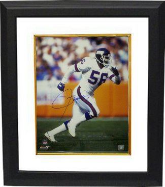 Lawrence Taylor played his entire professional career as a linebacker for the New York Giants. He is considered to be one of the greatest players in the history of football, and has been called the greatest defensive player of all time by members of the media, former players, and coaches. He won a record three Defensive Player of the Year awards and was named the league's Most Valuable Player (MVP) for his performance during the 1986 season. He was named First-team All-Pro in each of his first nine seasons and was a key member of the Giants' defense, nicknamed "The Big Blue Wrecking Crew", that led New York to victories in Super Bowl XXI and XXV. Lawrence Taylor has hand autographed this New York Giants 16X20 Photo. Certificate of Authenticity from Athlon Sports. Custom Black Mat and Premium Black Framed as shown.
