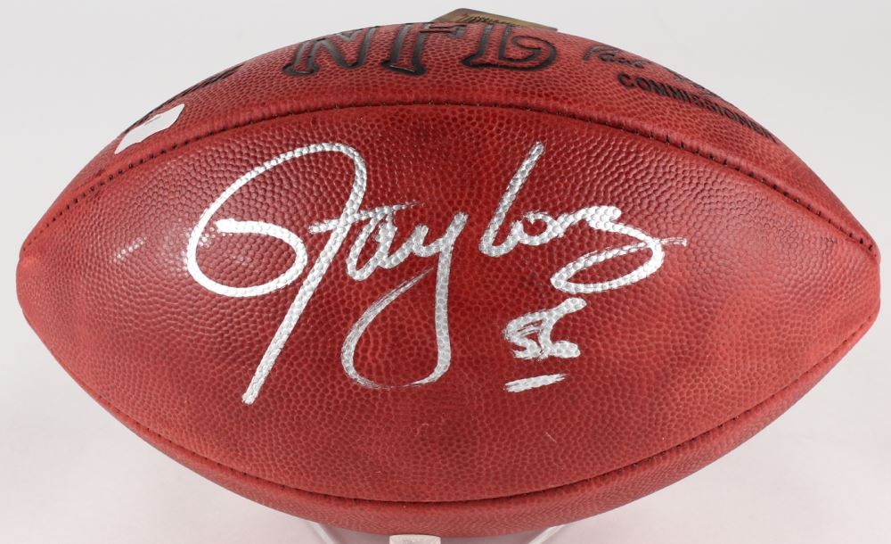 Wilson Official NFL Game Football. Hand-signed in silver paint pen by Lawrence Taylor (Giants, HOF). Please note, there is some minor staining on the football.