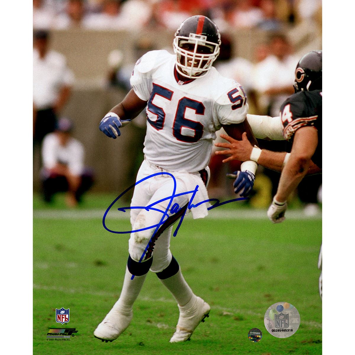 Lawrence Taylor Signed White Uniform vs Bears 8x10 Photo