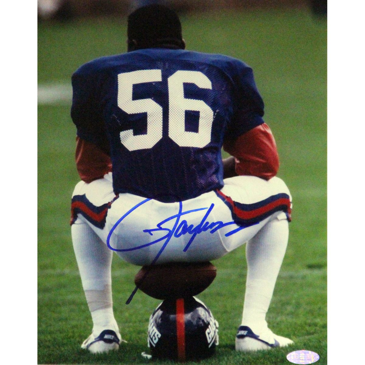 Lawrence Taylor Sitting on Football and Helmet Vertical 8x10 Photo