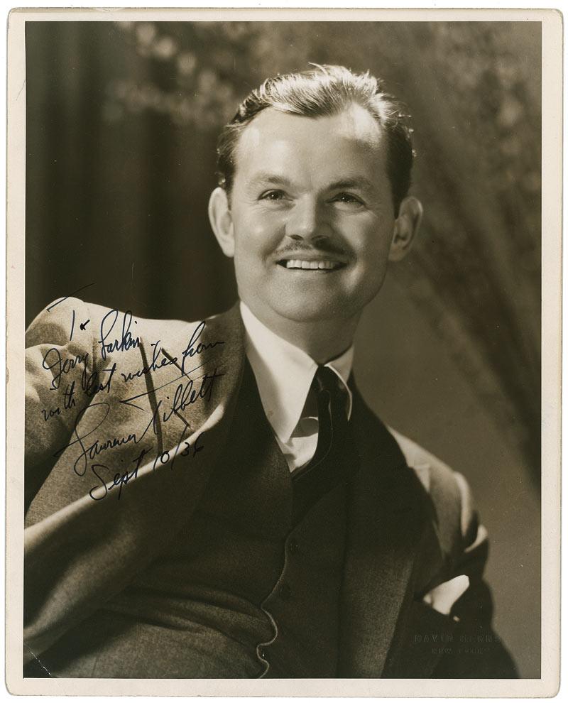 Vintage matte-finish 8 x 10 photo, signed and inscribed in fountain pen “To Jerry Larkin, with best wishes from Lawrence Tibbett, Sept. 10/36.” A couple small corner creases and edge dings, otherwise fine condition. Pre-certified PSA/DNA and RRAuction COA.