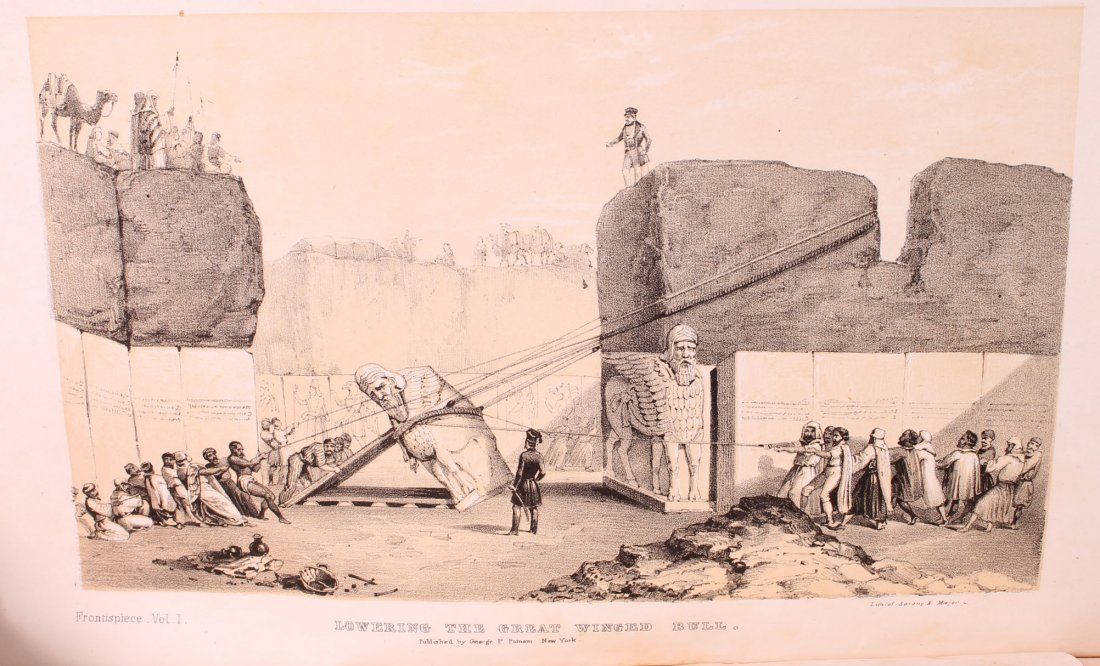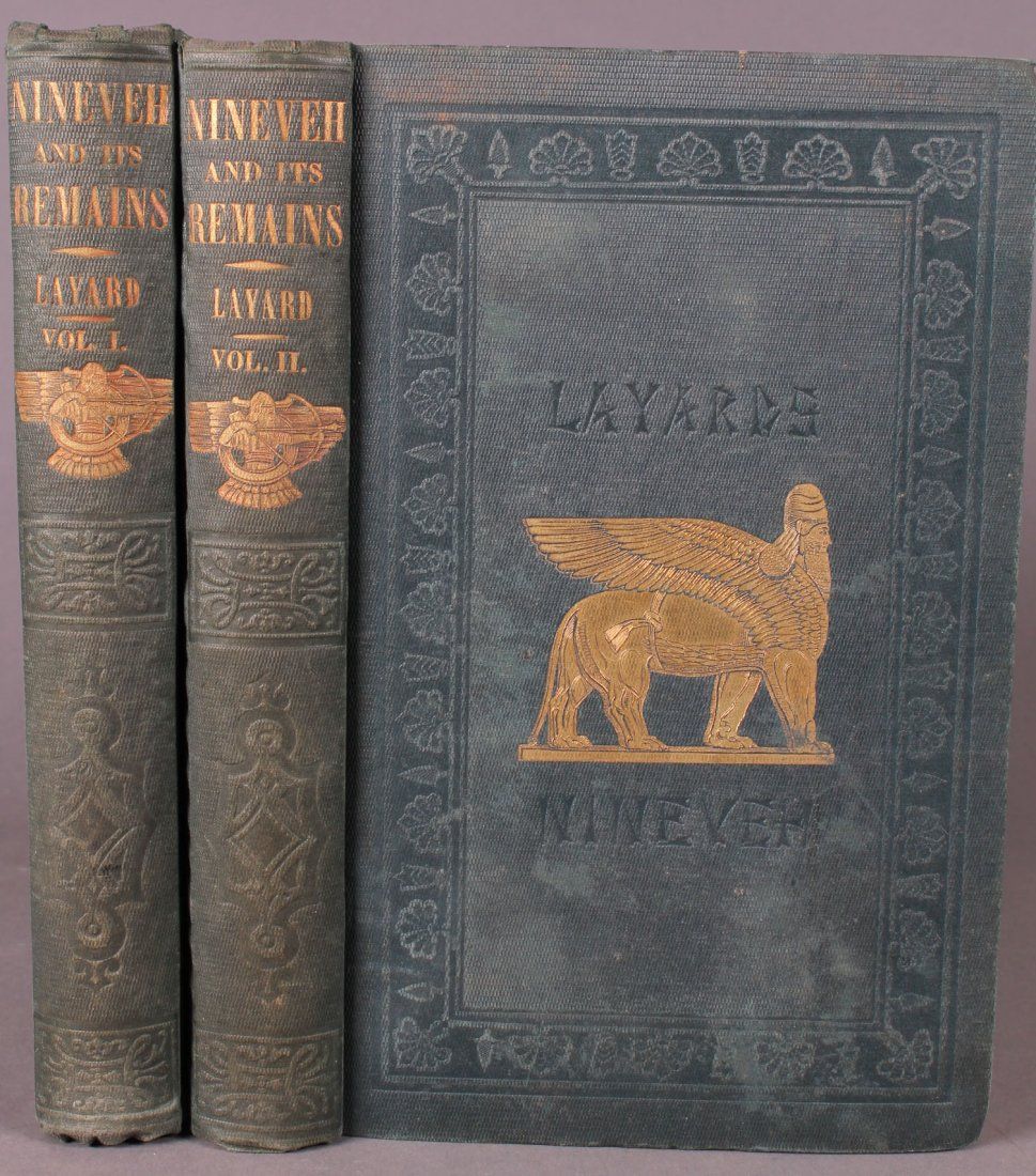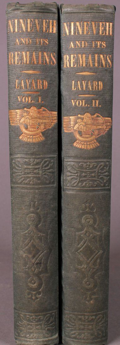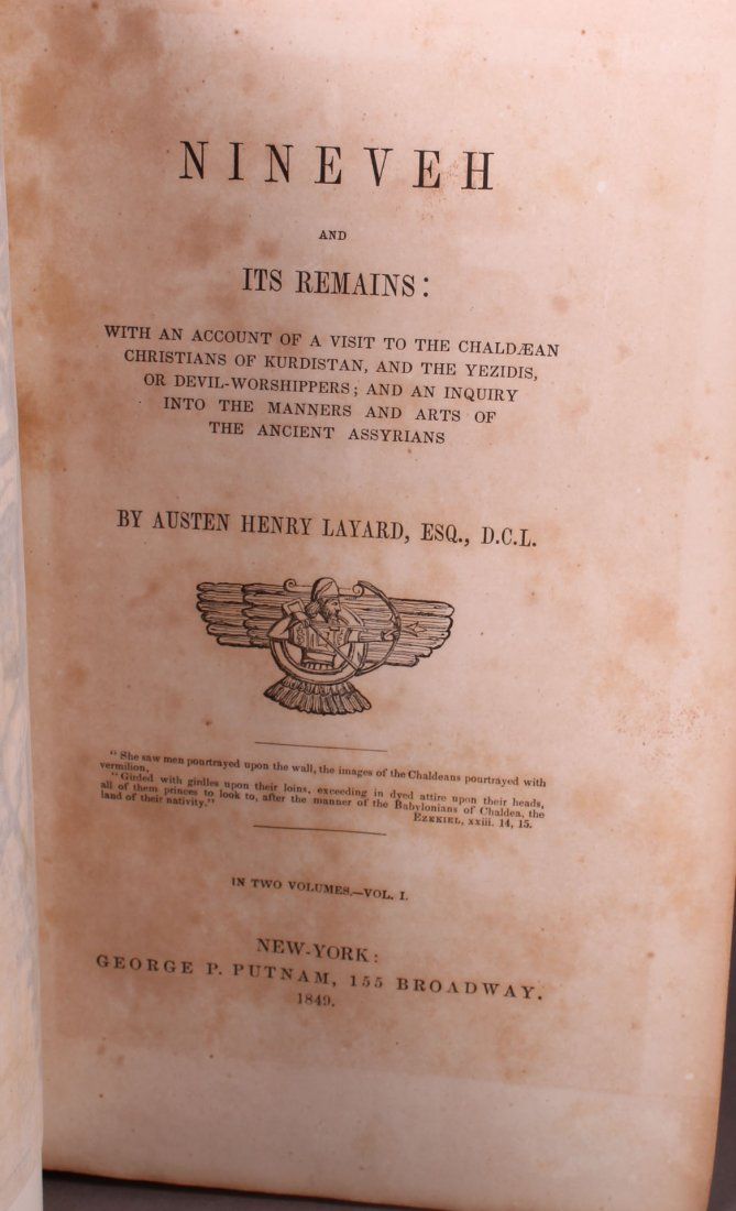 [Archeology]. Austen Henry Layard. NINEVEH AND ITS REMAINS: With an Account of a Visit to the Chaldean Christians of Kurdistan, and the Yezidis, or Devil-Worshippers; and an Inquiry into the Manners and Arts of the Ancient Assyrians. 2 Vols. NY: George P. Putnam, 1849.