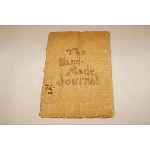 Layton, Harvey Porter. The Hand-Made Journal - Full Copy - Only Hand-Made Magazine On Earth. San Antonio, Texas: 1909. First Edition. Folio - over 12" - 15" tall. Soft Cover. Ex-Library. Very Good Condition, in a protective mylar cover. Original stiff wraps with 13 leaves, hand written text, hand drawn illustrations, hand stitched. Articles include: The Fall of the Alamo, Short Stories, Jokes, Famous Men and more, with Advertisements in the back. UNUSUAL.