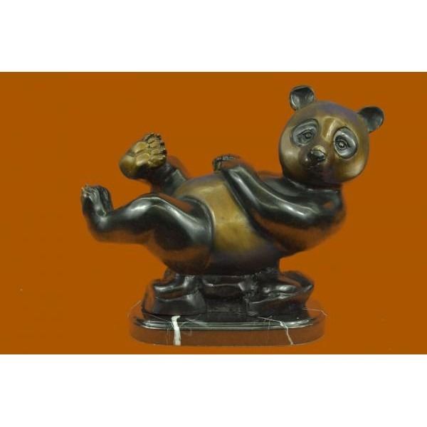 This splendid animal bronze sculpture is a magnificent creation. The sculpture depicts a lazy panda sitting on tree stub. The strikingly life-like animal features a slight patina that adds to the art works vibrancy. While the base the panda is sitting on is made from finest marble. Doing great work in adding typical characteristics of the distinctive Asian bear such as the bulky head or the constantly colored fur and the result of artist work is a modern animal sculpture with a very realistic touch. Bronze dimensions with marble base: Height 12 X Width 15 inches. Weight: 16 lbs.Please Note: This is a reproduction bronze sculpture from the original molded and signed. This featured bronze sculpture is a recast after the original, and has been done recently. This 100% bronze sculpture is an abstract piece certain to be a conversation piece.Please Note: This is a reproduction bronze sculpture from the original molded and signed. This featured bronze sculpture is a recast after the original, and has been done recently. This 100% bronze sculpture is an abstract piece certain to be a conversation piece.