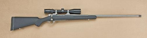 Lazzeroni bolt-action target rifle model 2005 in 7.82 Warbird caliber28” barrel with compensated muzzle, matte finish stainless steel, mounted with Schmidt and Bender 3x12 power Classic scope on factory mounts, factory fiberglass/graphite stock which is hand laminated and professionally bedded using aluminum pillar blocks. These rifles are fully precisioned and show great hand finishing. Original cost approx. $5,800 not including scope. Like new condition showing test firing, slight use only. With factory target shot at 300yds, 2” group. Serial #L200S015. From the Robert Petersen estate. Est: $1,500 - $3,000