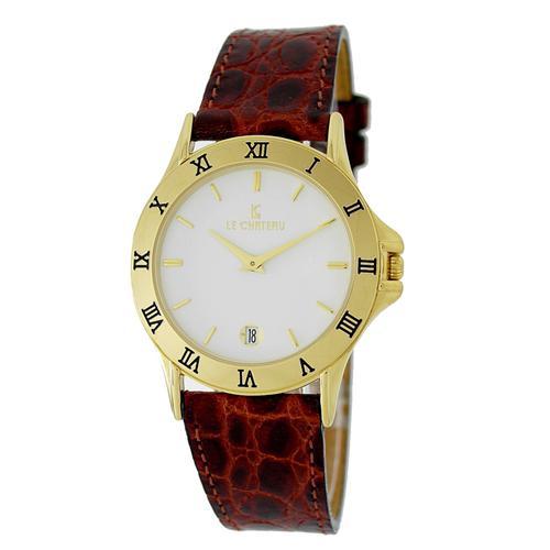 More Than Just A Timepiece, An Incredible Design An Work Of Art. This Beatiful Le Chateau Watch With Roman Numerals And Textured Dial Features A Genuine Japanese Seiko Movement, A Genuine Leather Band With 'Croco' Stamping, & Date. Watch Is Water Resistant And Includes A Three Years Manufacturer's Warranty.